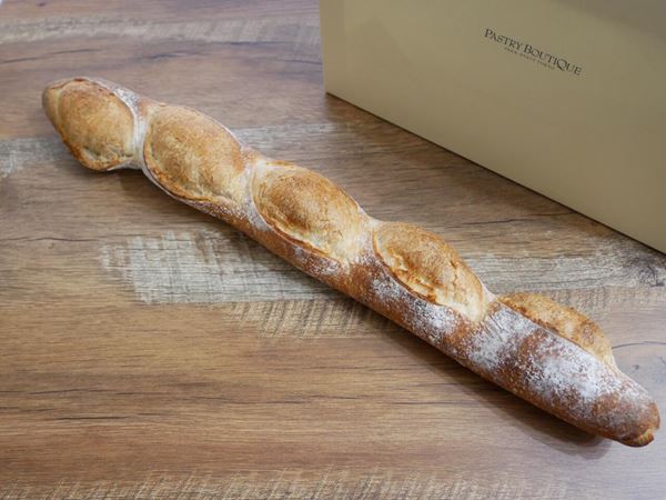 『バゲット』は、いわゆるフランスパン。フランスパンといえば、大体50cm以上のロングサイズが常ですが『ペストリー・ブティック』の『バゲット』は、全長約44センチ。
