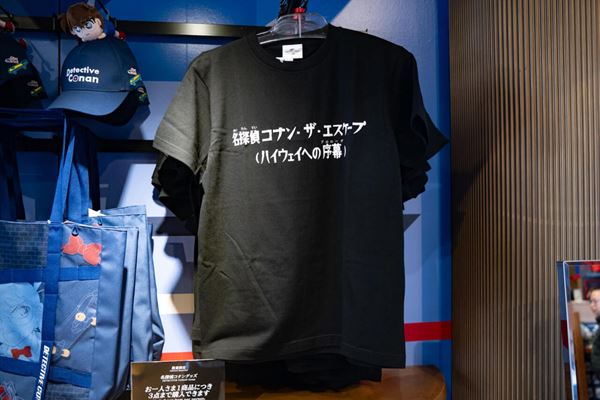 Tシャツは、描き下ろしアートのプリントはもちろん、黒Tシャツに「名探偵コナン・ザ・エスケープ」の文字をデザインしたユニークなアイテムも。