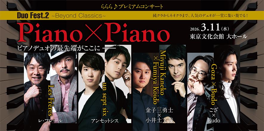 すべて見る3月11日(水)に東京文化会館 大ホールで『Duo Fest.2~Beyond Classics~ Piano×Piano』が開催される。