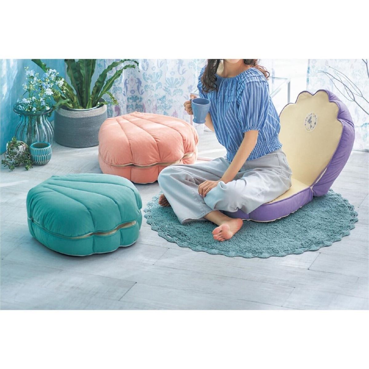 1つ置くだけで『リトル・マーメイド』の世界に浸れる、可愛いシェル型のミニ座椅子。