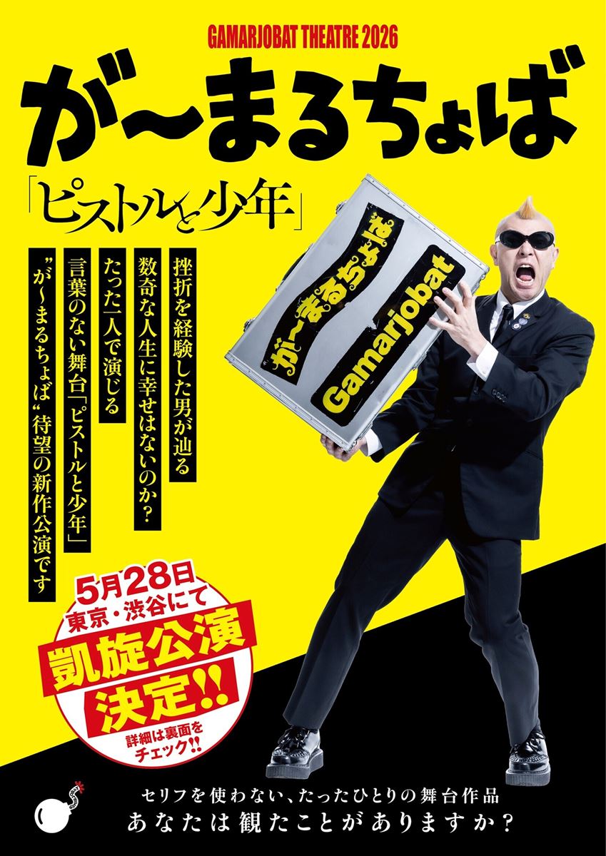 世界35カ国以上から招待を受け公演を行ってきたパントマイムアーティスト・が~まるちょばが手がける最新長編作品、GAMARJOBAT THEATRE 2026『ピストルと少年』の凱旋公演が、2026年5月28日(木) に東京・渋谷区文化総合センター大和田 さくらホールで開催される。
