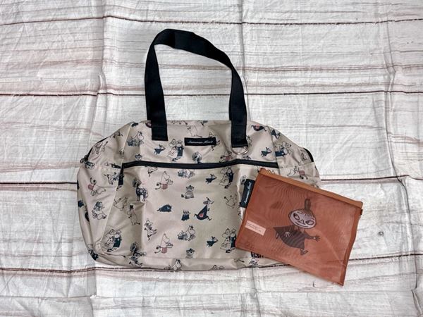 ムーミン谷の仲間たちが大集合したデザインのボストンバッグとメッシュポーチのサイズ感や仕様、実際の使い勝手まで詳しくご紹介します。