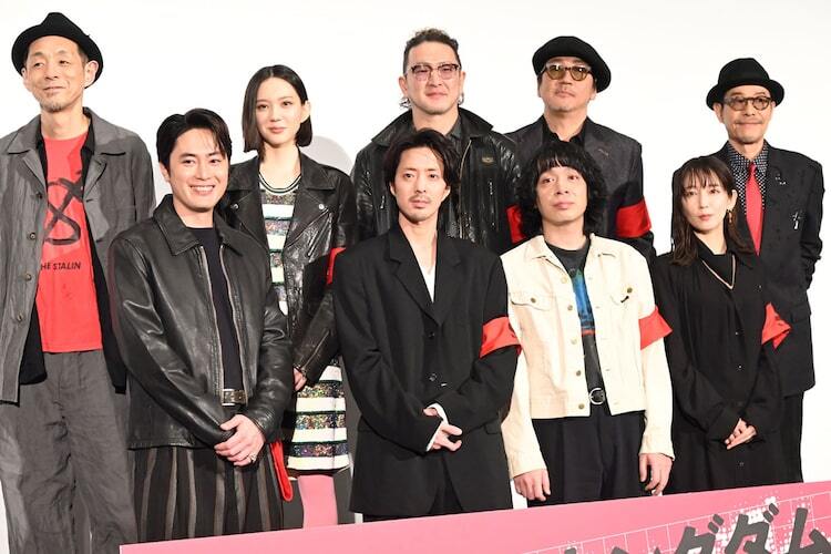 「ストリート・キングダム 自分の音を鳴らせ。」ジャパンプレミアにて、前列左から間宮祥太朗、若葉竜也、峯田和伸、吉岡里帆。後列左から宮藤官九郎、中島セナ、中村獅童、大森南朋、田口トモロヲ