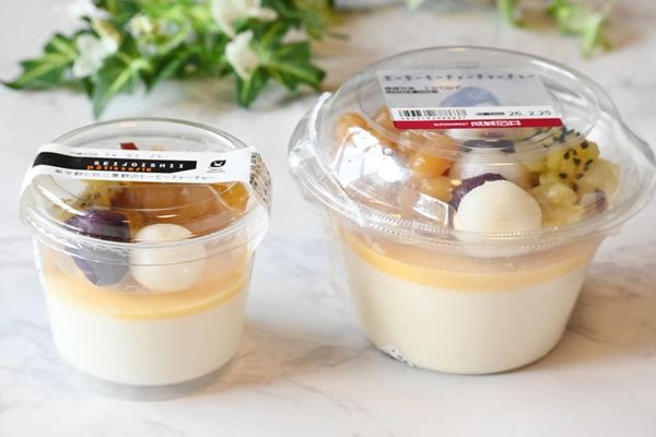 「成城石井自家製 モーモーモーチャーチャーチャー」は、通常規格商品と同様、カスタード風味の黄色いアングレーズソースと、ココナッツピューレを使用して風味豊かに仕上げた白いココナッツブランマンジェの2層からなる一品。