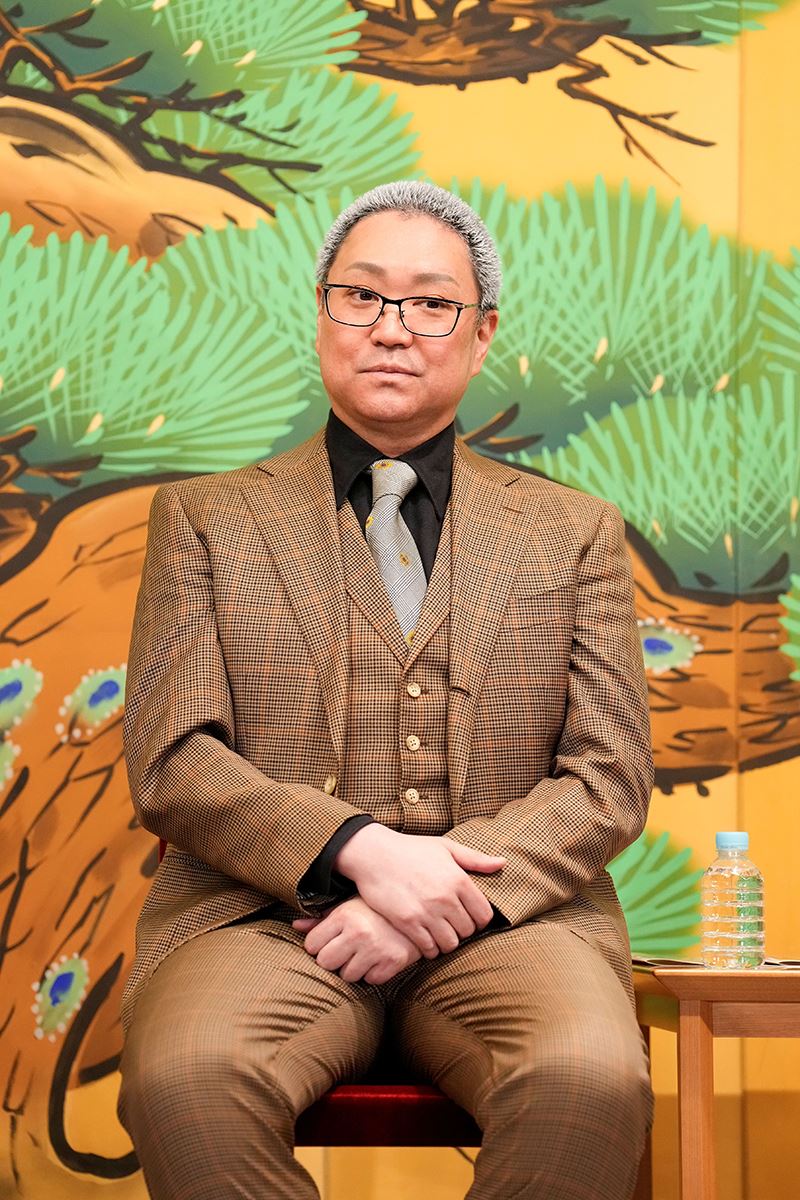 取材会の冒頭で挨拶したのは、昼の部『加賀見山再岩藤』で岩藤の霊と鳥井又助を、また夜の部の『三人吉三巴白浪』の和尚吉三を、それぞれ巳之助とのWキャストで演じる松緑。「いろんなところを巳之助さんからも盗んで、いい芝居にしたいなというふうに思っております」と意気込む。