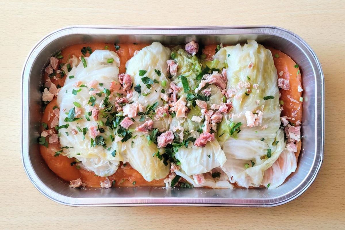 【コストコ ロールキャベツ 1197g 1966円】フタを外してから容器ごとオーブンで加熱調理