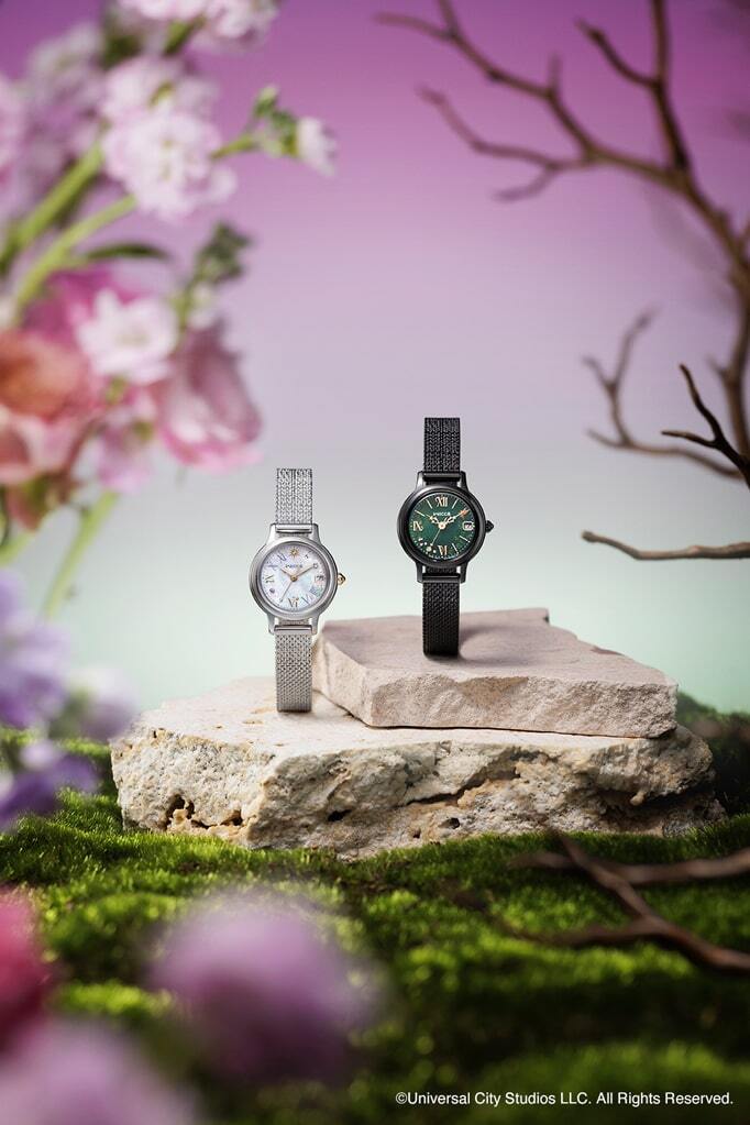 映画「ウィキッド 永遠の約束」を象徴するキャラクター・悪い魔女エルファバと、善い魔女グリンダをイメージしたスペシャルモデルの腕時計が、3月6日にシチズンのwicca(ウィッカ)から発売される。各550本限定で、価格は税込3万5200円。