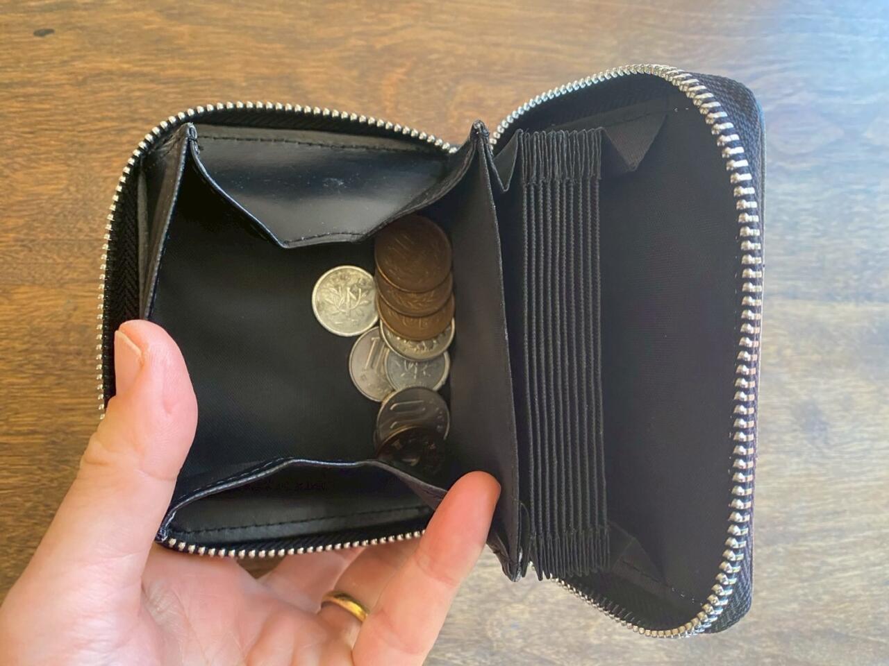 小銭入れも使いやすく、コインが飛び出さない構造になっています。なお、お札はカード収納の下を通す仕様でサッと取り出せます◎