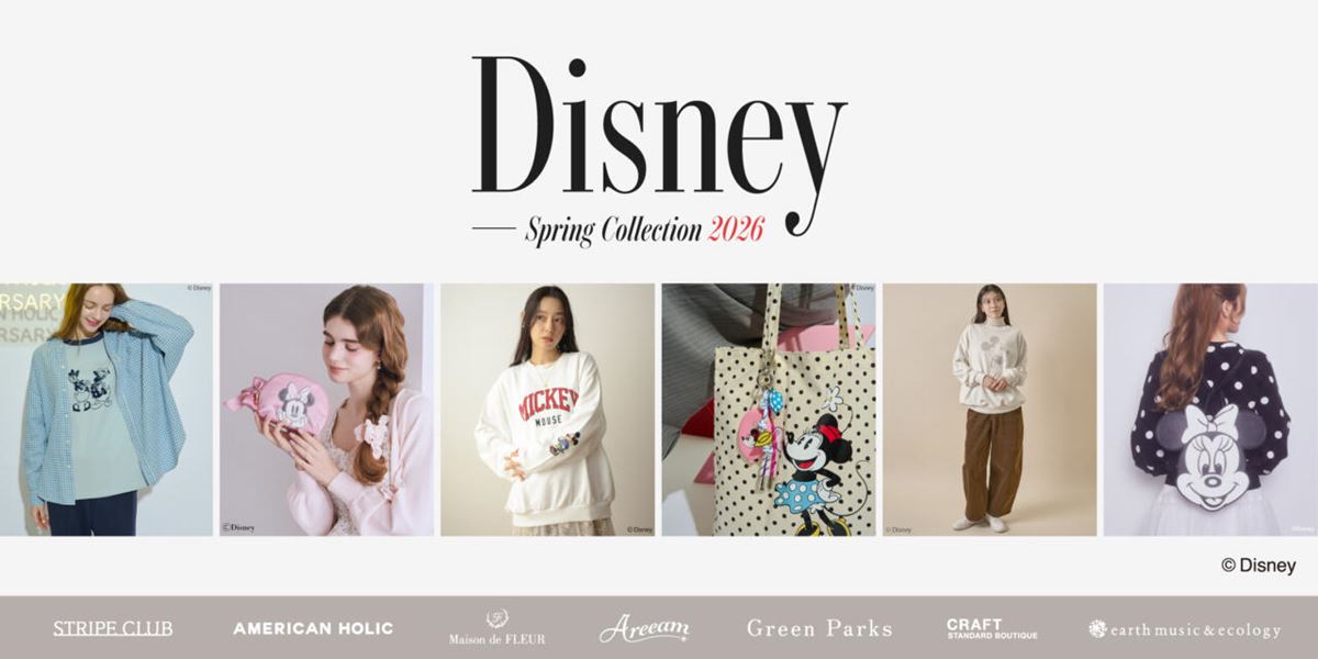 earth music&ecology、AMERICAN HOLIC、Green Parks、Maison de FLEUR、CRAFT STANDARD BOUTIQUE、Areeamの各ブランドから、ディズニーコレクションのアイテムが順次発売。