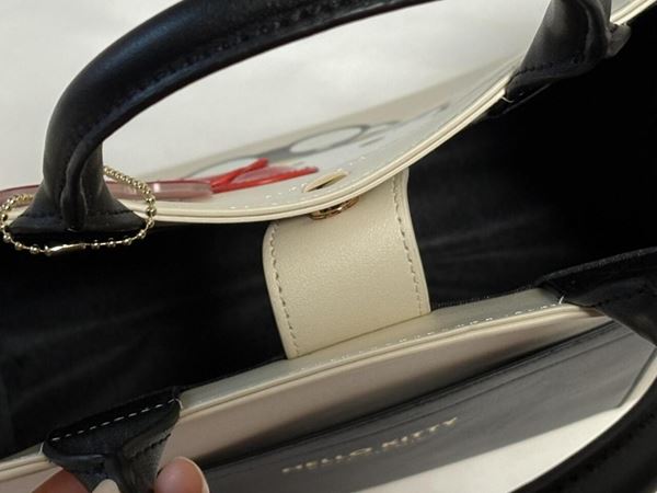 さらに、着け外し可能なハート型のアクリルチャームも付属。キティちゃんとタイニーチャムのプリント入りで、バッグのアクセントになりますよ♪