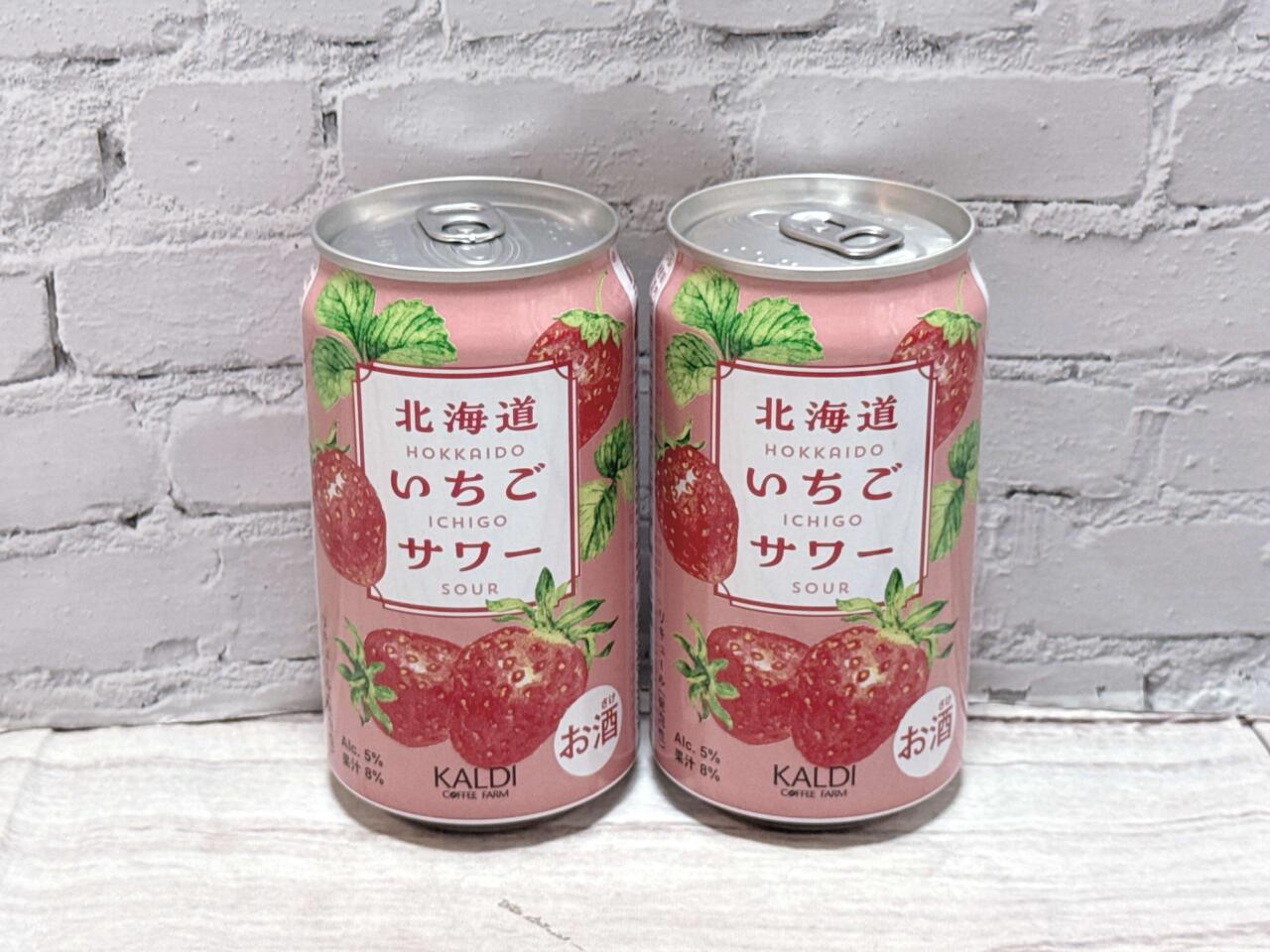 【カルディ いちごバッグ/オリジナル 北海道いちごサワー】350ml×2個。北海道産「すずあかね」の果汁を贅沢に使ったお酒♪