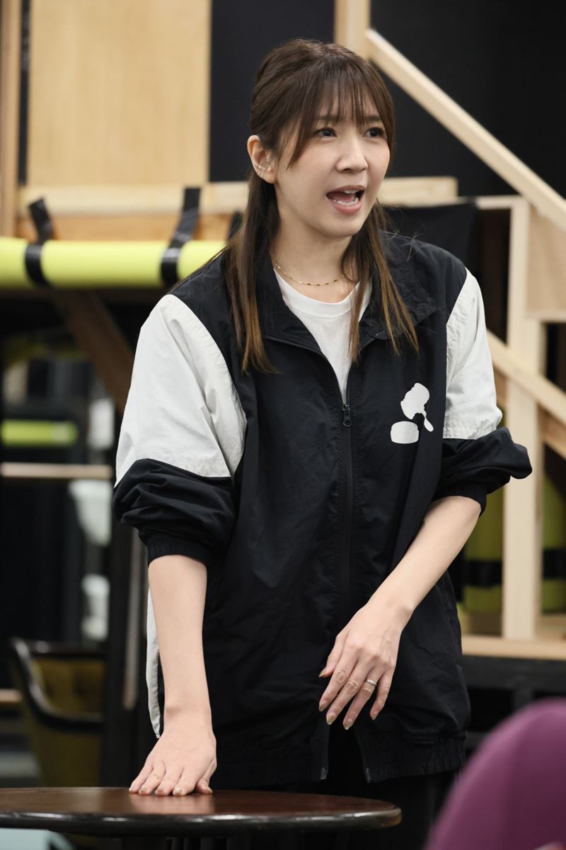 そこに、低音で不穏な空気を投じてくるのが東山。ナレーターという名の通りに登場人物が置かれている状況や心理を物語る、ある意味で物語の枠外にいる存在。それでいて、時には枠の内に入って牛乳屋や産婦人科医、教師などさまざまな姿で現れてミセス・ジョンストンやミッキー、エディらと言葉を交わす。その変幻自在ぶりときたら、なんとも魅力的。牛乳屋などで見せるコミカルさは、おそらく稽古場でさまざまなアイディアを繰り出しながら演じているのだろう、しばしばスタッフの笑い声が稽古場に響いていた。その一方、ナレーターとしては運命を司る者、あるいは人の心の闇にささやきかける者かのような、容赦なく、けれどどこか艶やかで色気すら漂う。そんな東山の持ち味が際立つ歌声で、特に「テーブルの上の靴」は何度となく物語をリードしていた。