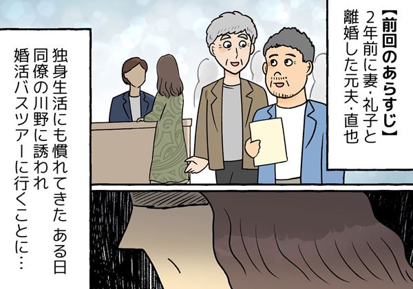 同僚のため、元夫は婚活バスツアーに!隣の席になった女性は…!?【続・熟年離婚は幸せか-50代元夫婦の行く末-】