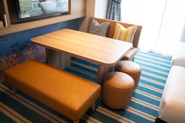 2段ベッドのように作られた秘密基地感のあるお部屋には、テレビ前にテーブルとソファーも設置され、お部屋でわいわいと滞在できる客室です。