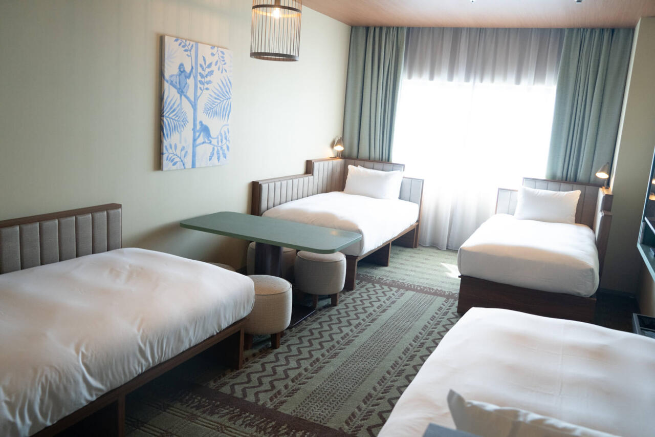 「アジアンエメラルド」の客室は、ベッドが4台あり、それぞれ部屋の隅に分かれて配置されているのがポイントです。