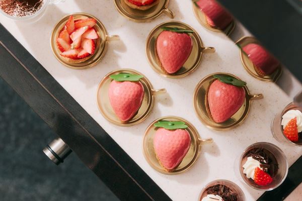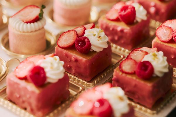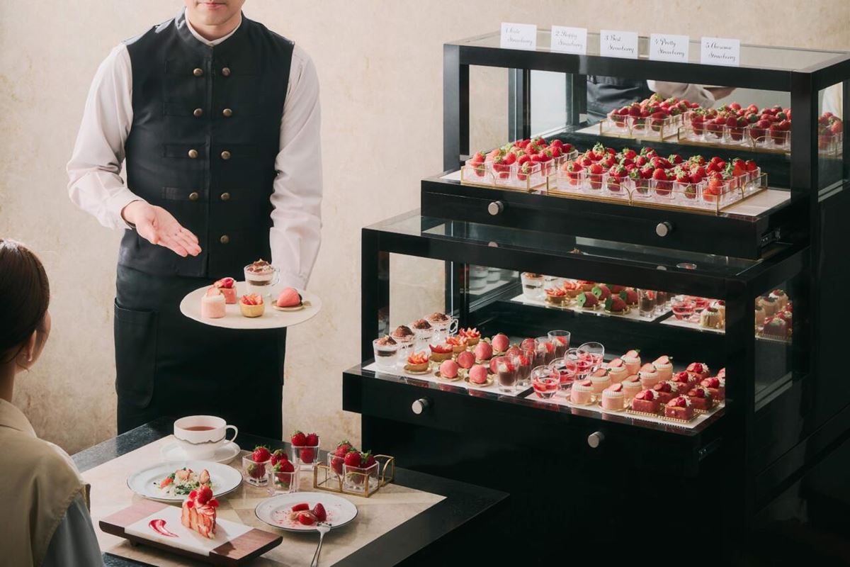 続いてブランドいちご5種をはじめ、ホテルメイドの華やかないちごスイーツや、サラダ、スープ、パスタなどのセイボリーを、ワゴン&プラッターサービスでテーブルまで届けてくれます。