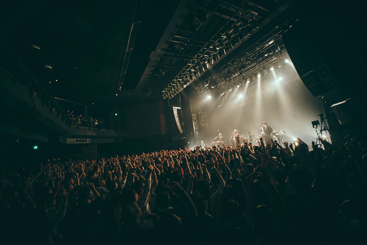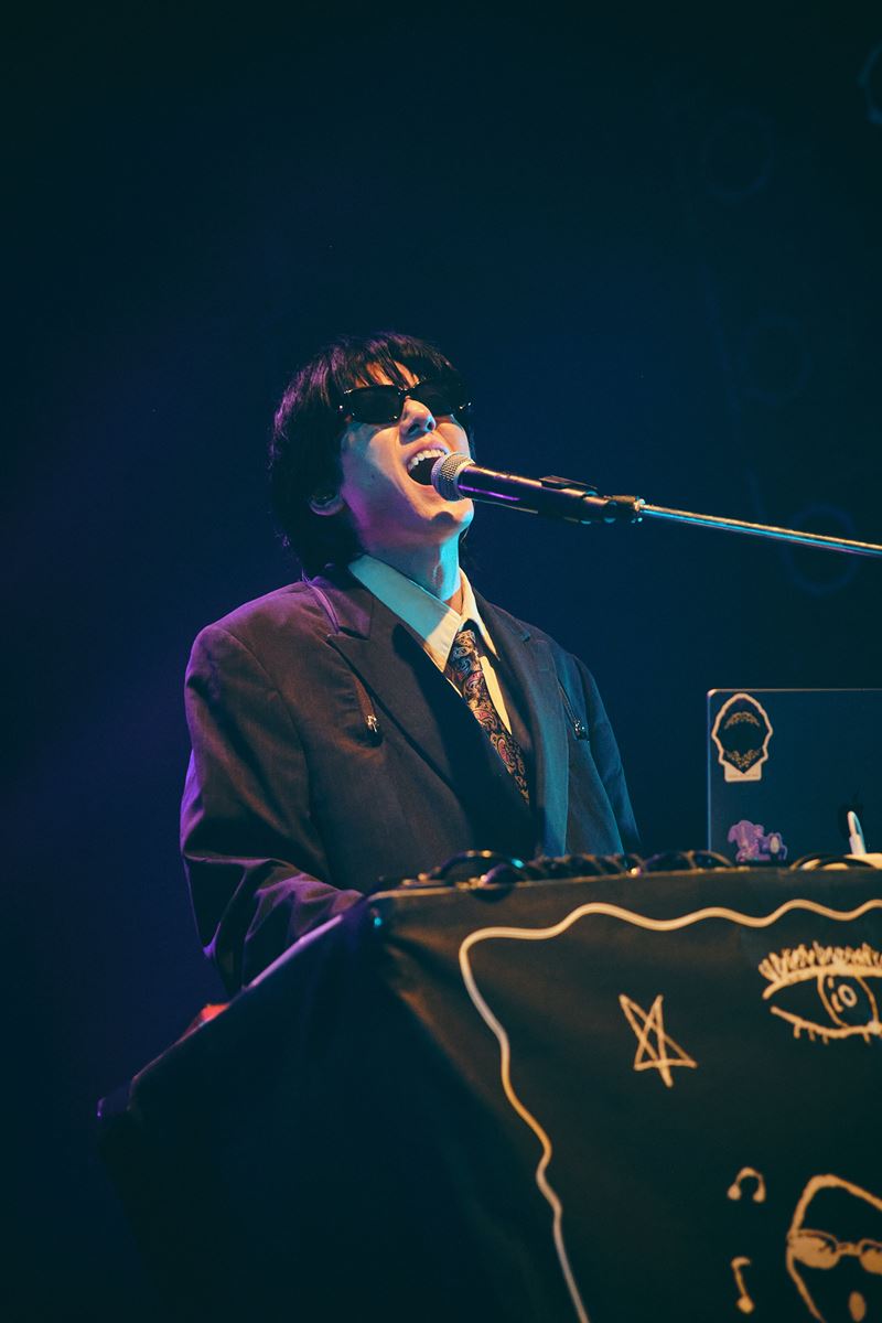 三人三様の個性が見える短いMCを挟み、マサの「やれんのか、おまえら! 信じてるぜ、おまえら! 声出せ-!」の一声で「FUNKY MUSIC!!」へなだれ込む。タイトル通りファンキーなサウンドスケープの中、オーディエンスは楽しく飛び跳ね、「1,2!」の掛け声で楽曲を彩っていく。「創造ゲーム」ではタリラがステージを動きながら客席に向けて歌声を飛ばす。「未完成婚姻論」では、サビのキラーフレーズ“結婚しましょう そうしましょう”で大合唱が巻き起こる。客席と密にコミュニケーションを取りながら、ライブは息つく暇がないほどのスピード感で突き進んでいく。
