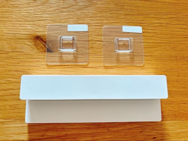 壁にペタッと貼るだけで、洗面小物をまるごと浮かせる収納なんです。詳しく紹介します♪