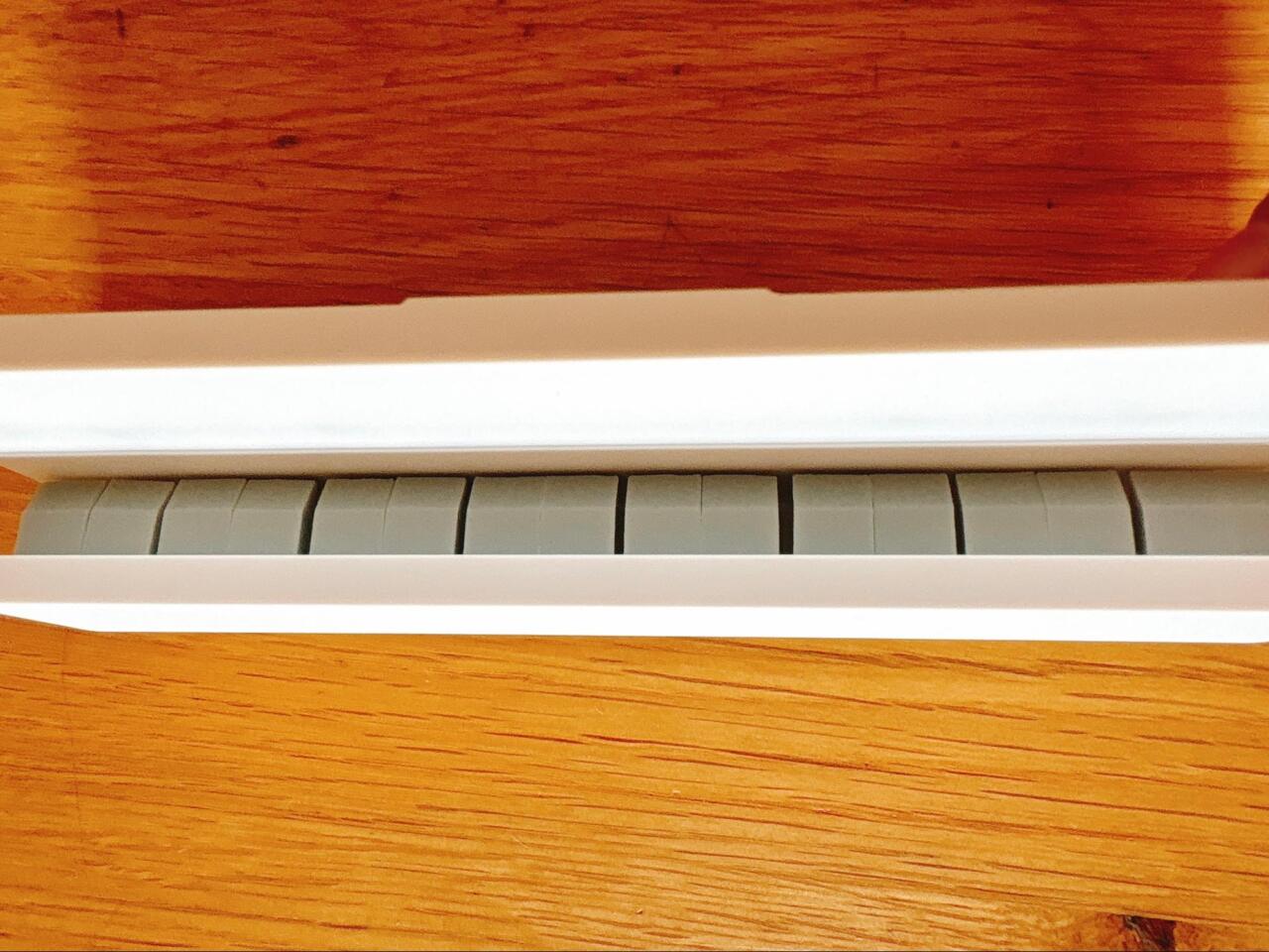 このホルダーの最大の特徴は、1cm間隔で入ったシリコーンの切り込み。歯ブラシやチューブを下から差し込むだけで、それぞれをしっかりキャッチしてくれるんです!