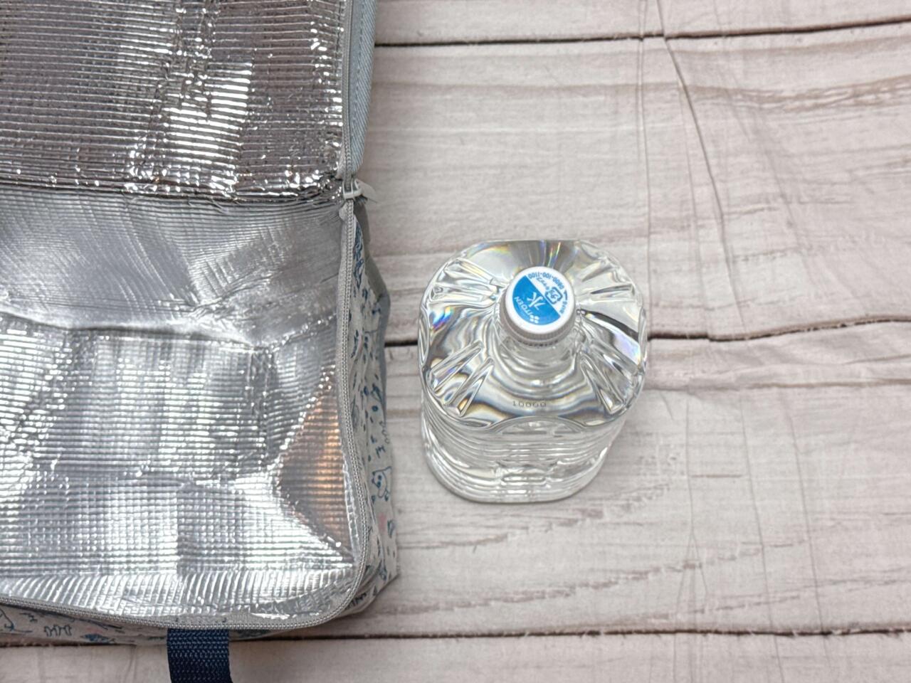 【MOOMIN<ムーミン> ボックス型の大容量 保冷保温バッグ】内側には保冷・保温機能付きの生地を使用。高さは2Lペットボトルとほぼ同じです