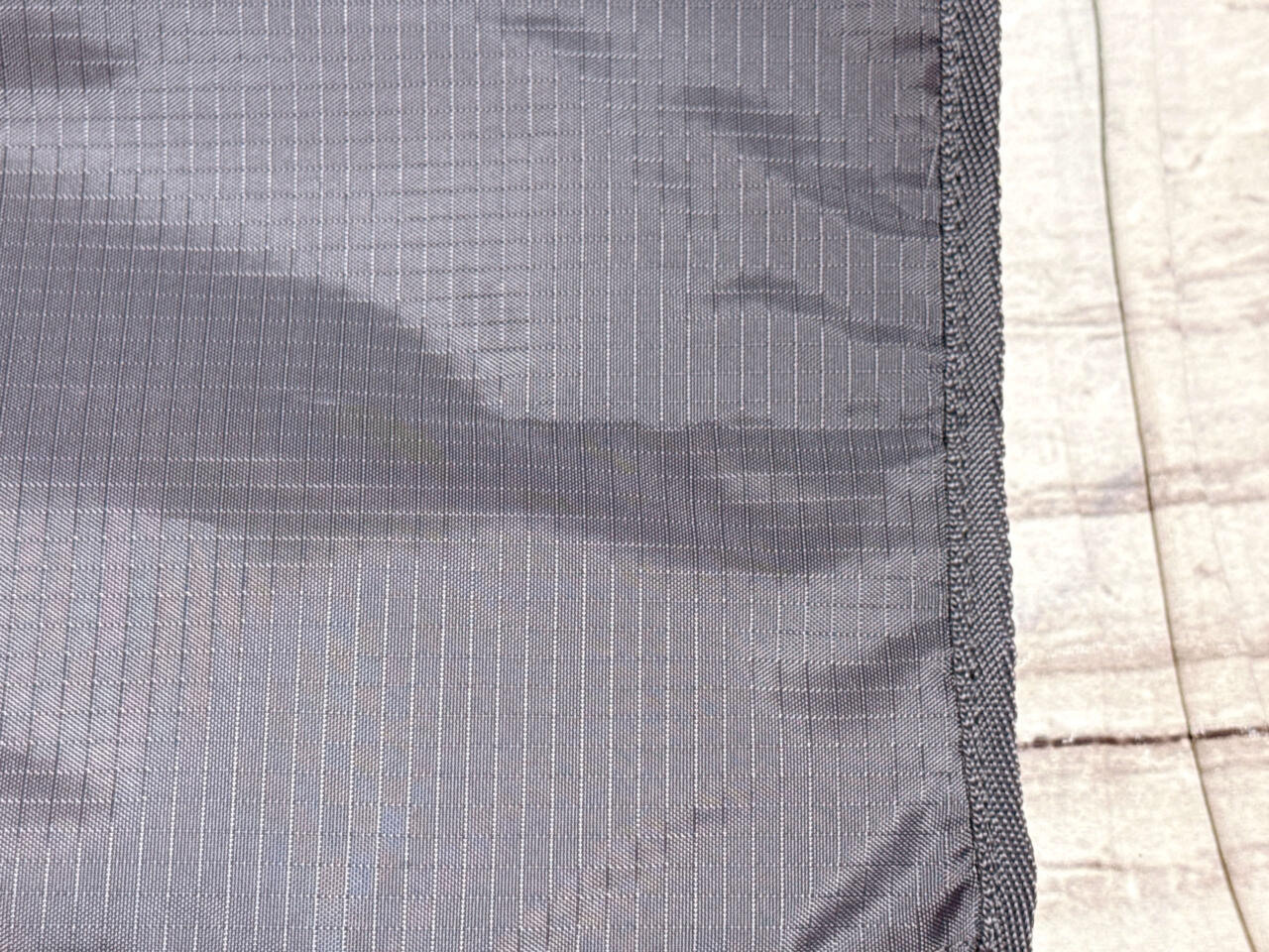 素材には、軽くて丈夫なリップストップ生地を採用。リップストップとは、キャンプや登山用のテントや寝袋などにも使われる、格子状に補強糸が織り込まれた生地のことです。