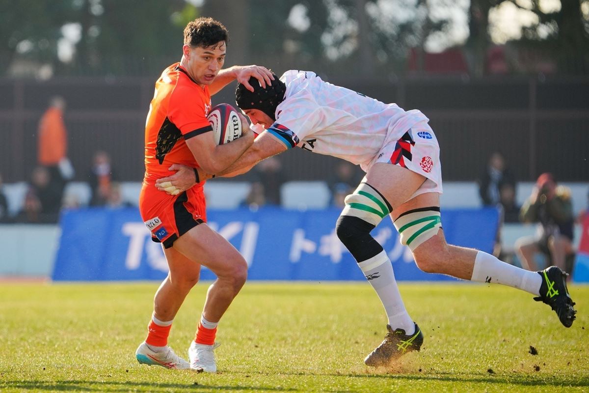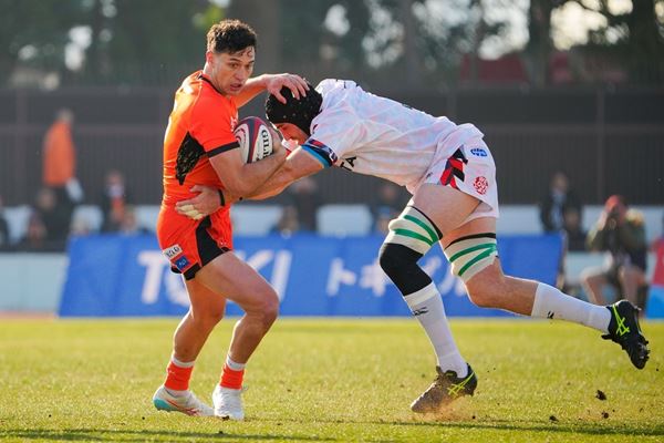 前節も早々に先制トライを決めると、19・26分とWTBヴァイレアが連続トライで21-0とワンサイドゲームの模様となるも、後半は横浜キヤノンイーグルスが反撃に出た。53・57分と立て続けにトライを決められて雲行きが怪しくなったが、その後はスコアを許さず。逆に78分CTBリカス・プレトリアスが勝負を決めるトライを叩き付けて28-10。