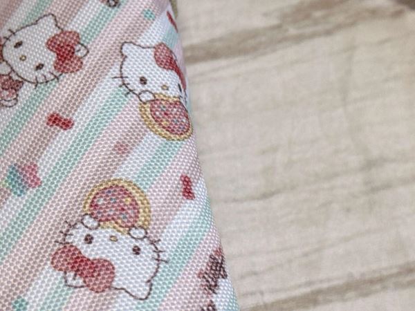 ストライプのカラーはキャラクターごとに異なり、キティちゃんはホワイトをベースに淡いピンク2色とミントグリーンの配色。マイメロディとも迷いましたが、よりやさしい印象のピンクカラーに惹かれてキティちゃんを選びました。