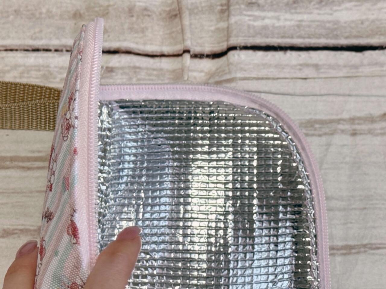 内側には保冷機能付きのアルミシートを使用。これからの季節、冷たいドリンクを持ち歩くのにぴったりです。