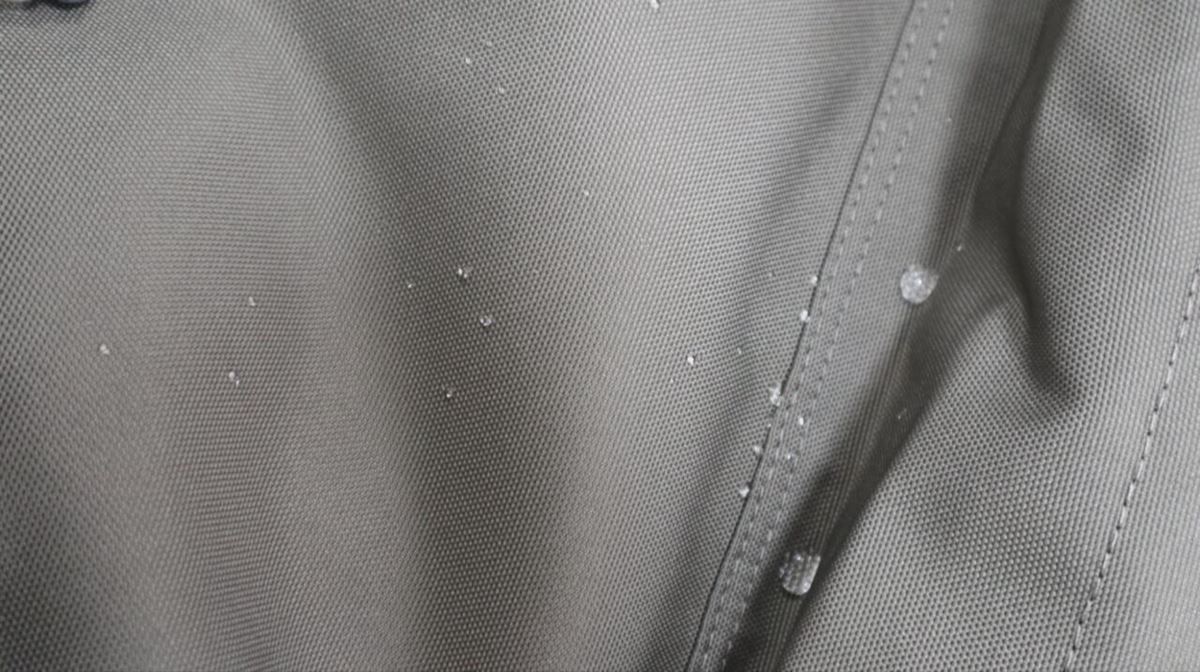 実際に表面に水をかけてみたところ、水がじわっと染みることはなく、水滴のまま転がっていきました。小雨程度なら全く問題なさそうです!