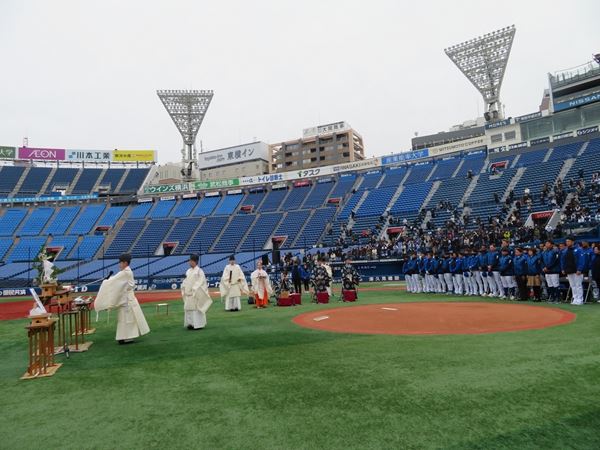 3月13日、横浜DeNAベイスターズのフロント、監督、コーチ陣、選手、スタッフ、球団職員が横浜スタジアムに一堂に会し、28年ぶりとなるセ・リーグ制覇を誓った。5年連続で横浜総鎮守である伊勢山皇大神宮より神職を招いて『必勝祈願 2026』を実施。『必勝祈願』終了後には書道家・杉田曠機氏による書道パフォーマンスにて『必勝』の文字を揮毫した。