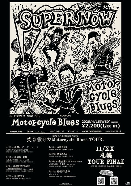また、リリースに伴い、全国ツアー『突き抜けたMotorcycle Blues TOUR.』の開催も決定。ツアーは地元・札幌をはじめ、道内では函館、旭川、道外では大阪、京都、名古屋での公演が予定されている。