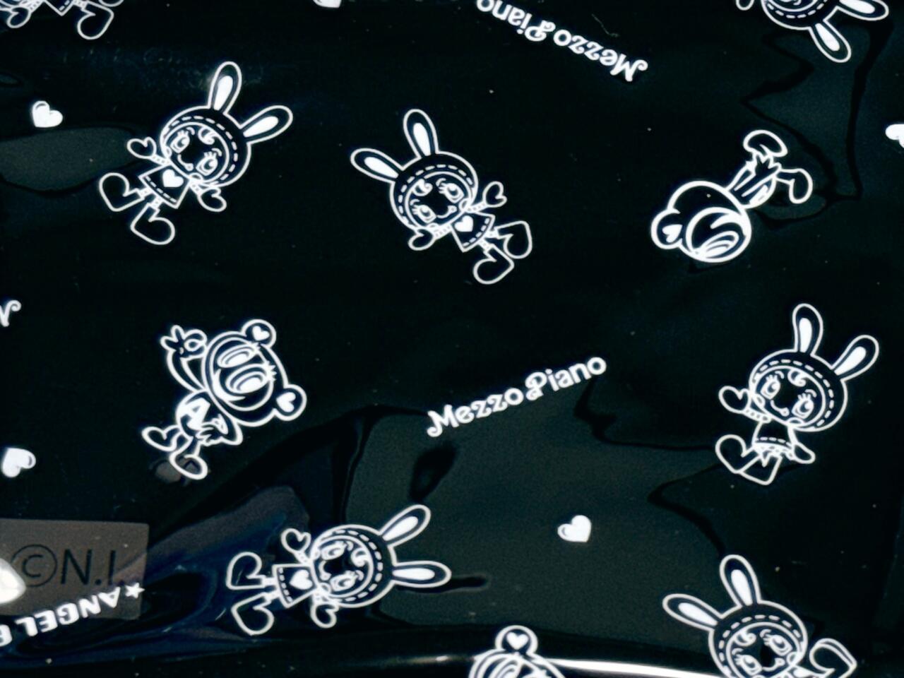透け感のあるクリアブラックに、ホワイトで描かれたベリエちゃんとナカムラくんの総柄デザインがかわいいポーチ。