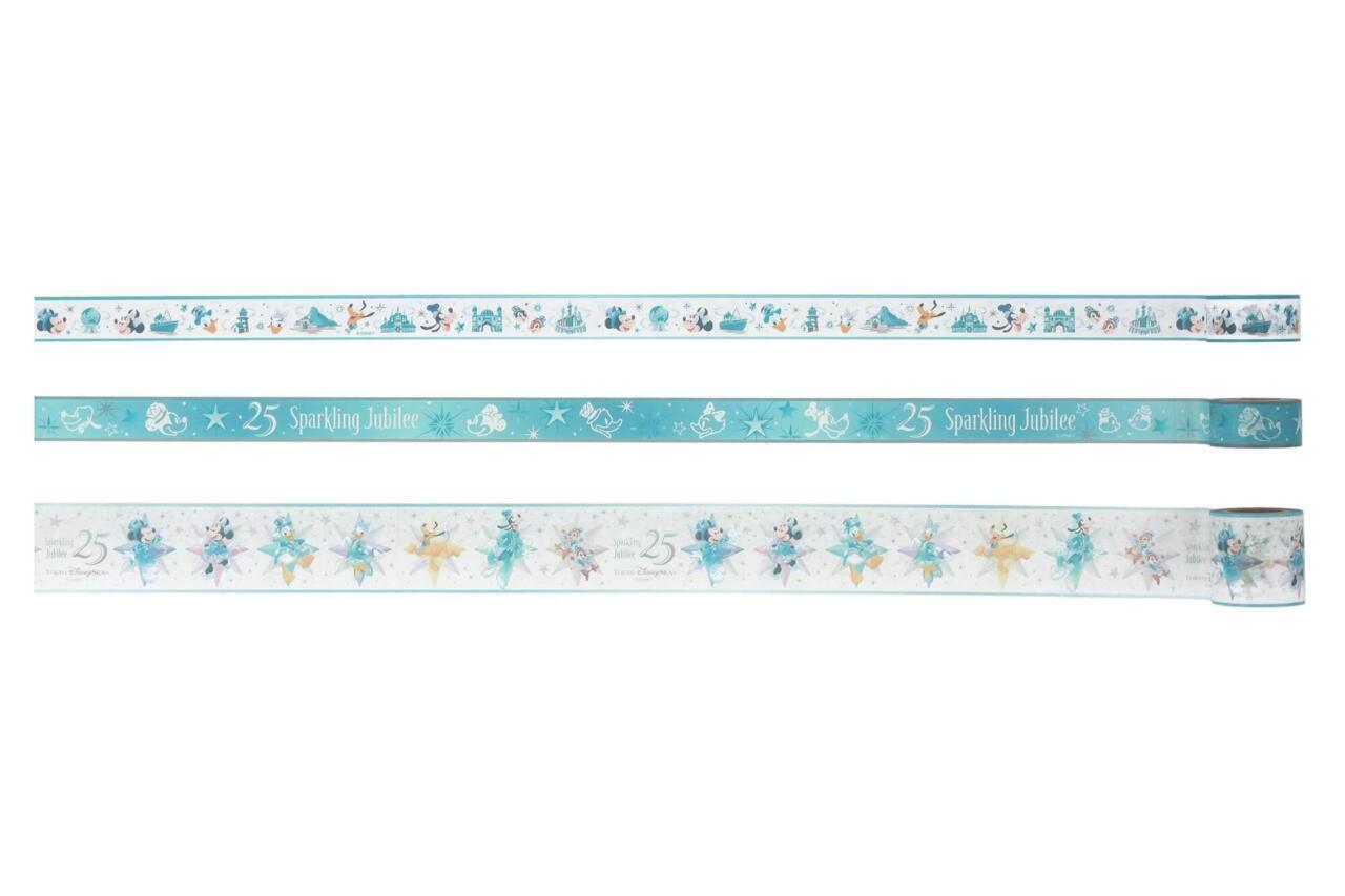 25周年のコスチュームを着たミッキー&フレンズをデザインしたマスキングテープや、ジュビリーブルーのマスキングテープがセット。