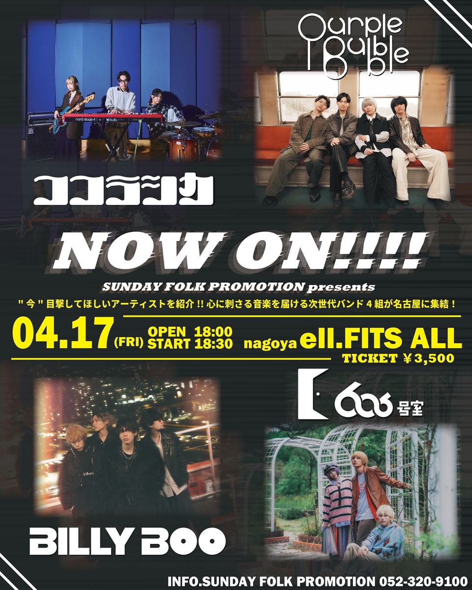 『SUNDAY FOLK PROMOTION presents NOW ON!!!!』が、2026年4月17日(金) 愛知・名古屋 ell.FITS ALLにて開催される。