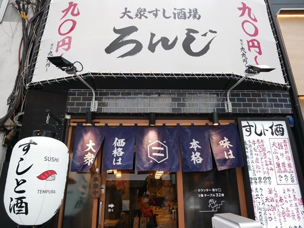 渋谷駅・井の頭線マークシティ口から徒歩1分という好立地に、2月26日にオープンした『大衆すし酒場 ろんじ』は、寿司は一貫90円~、天ぷらは1品90円~という手ごろな価格から食べられるお店なんです。