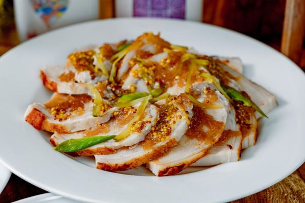 「ポークの低温ロースト シャルキュティエール風」<期間:2026年2026年3月2日~5月31日>【“お花見×アウトドア料理”をインドアで楽しむグランピングブッフェ開催!映画「ウィキッド 永遠の約束」コラボメニューも登場!】