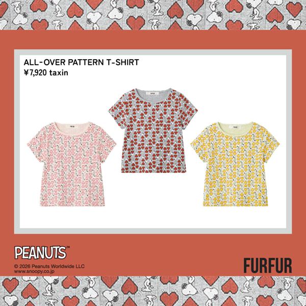 アパレルアイテムは全3型。どれもハートモチーフと、愛らしいスヌーピープリントがあしらわれた特別デザインです。