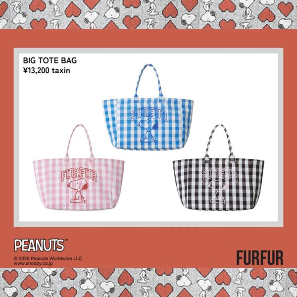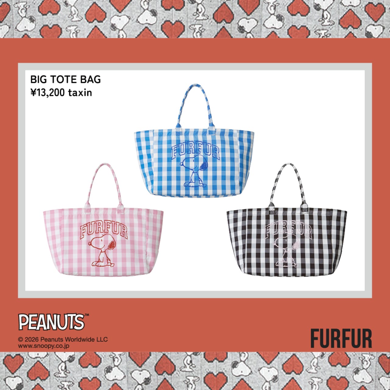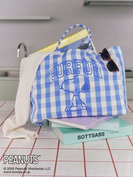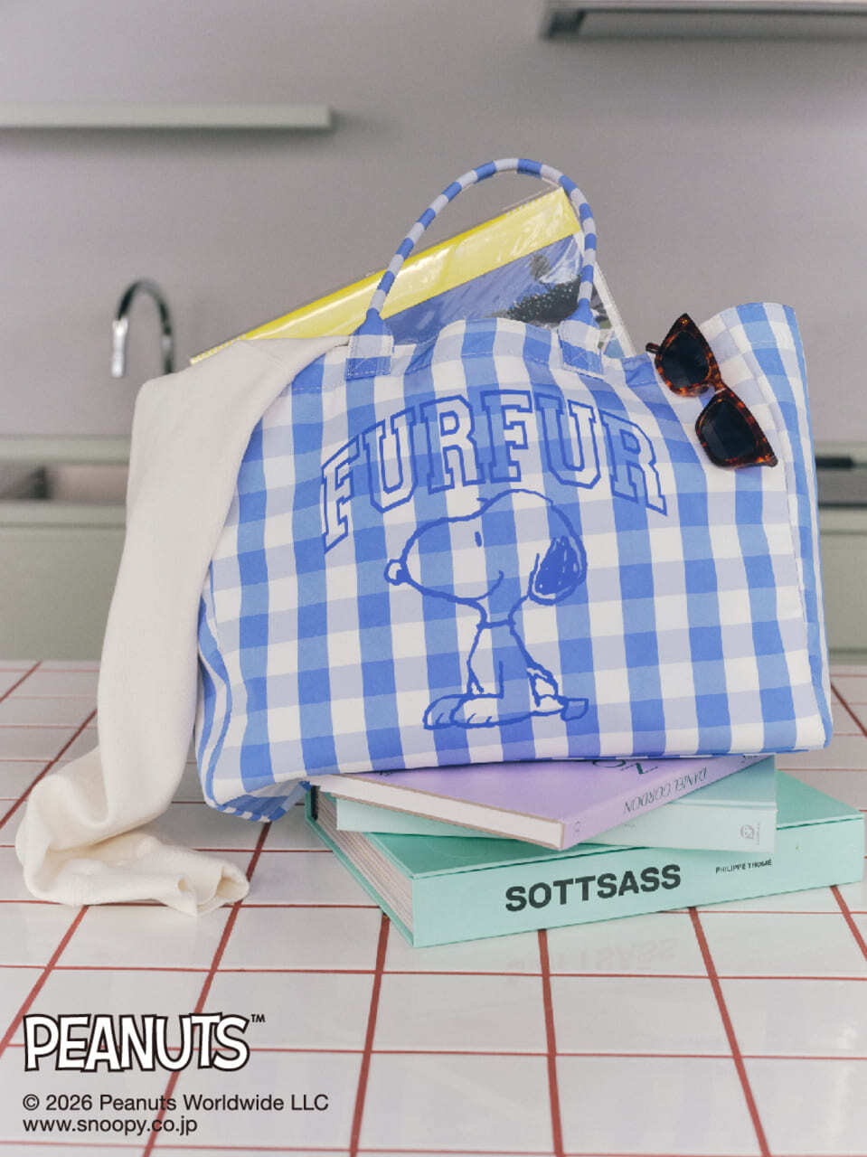 今回の注目アイテムのひとつが、フロントにスヌーピーのプリントと「FURFUR」の文字を大胆にあしらったトレンドライクなビッグサイズのトートバッグ。