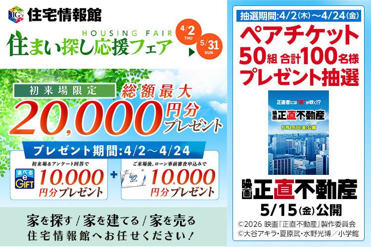 住宅情報館では、映画『正直不動産』公開記念 ムビチケプレゼントキャンペーンが4月2日(木)から開催される。