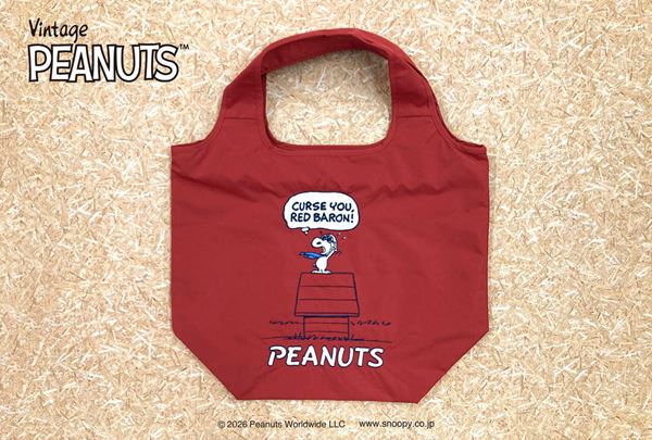 スヌーピーは、スヌーピーと仲間たちのデザインと、パイロットの変装「フライング・エース」のデザイン。レッドベースのバッグはカジュアルコーデのアクセントになりそうです♪
