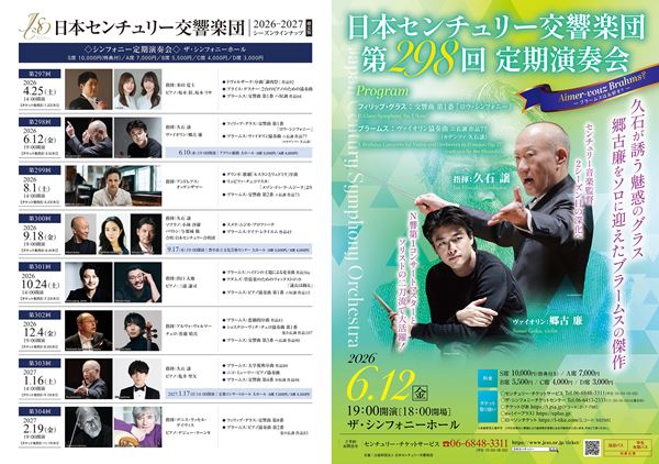 ぴあ 総合TOP > 年間テーマはブラームス、そして現在も生まれ続ける音楽。日本センチュリー交響楽団の2026-2027シーズンラインナップ