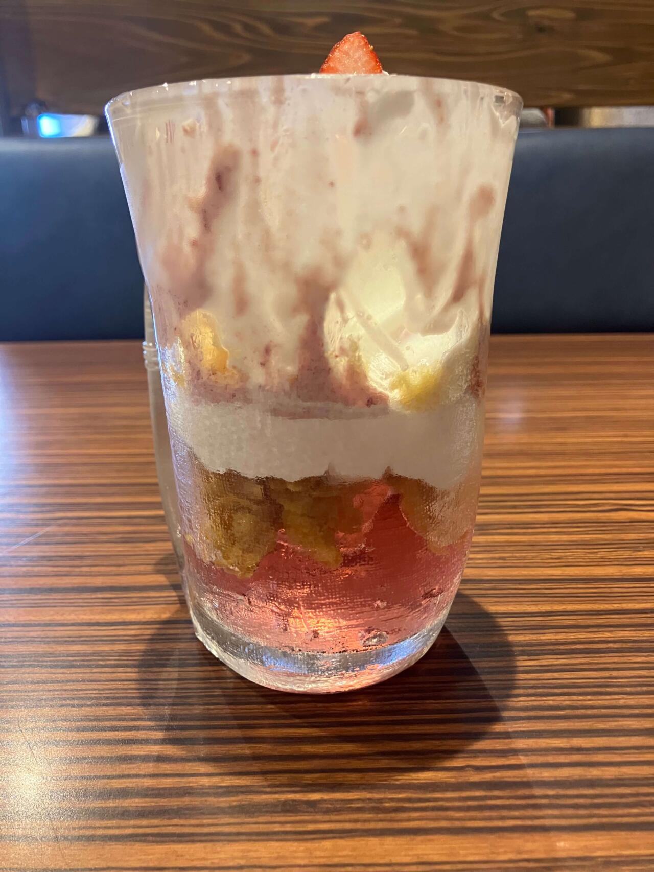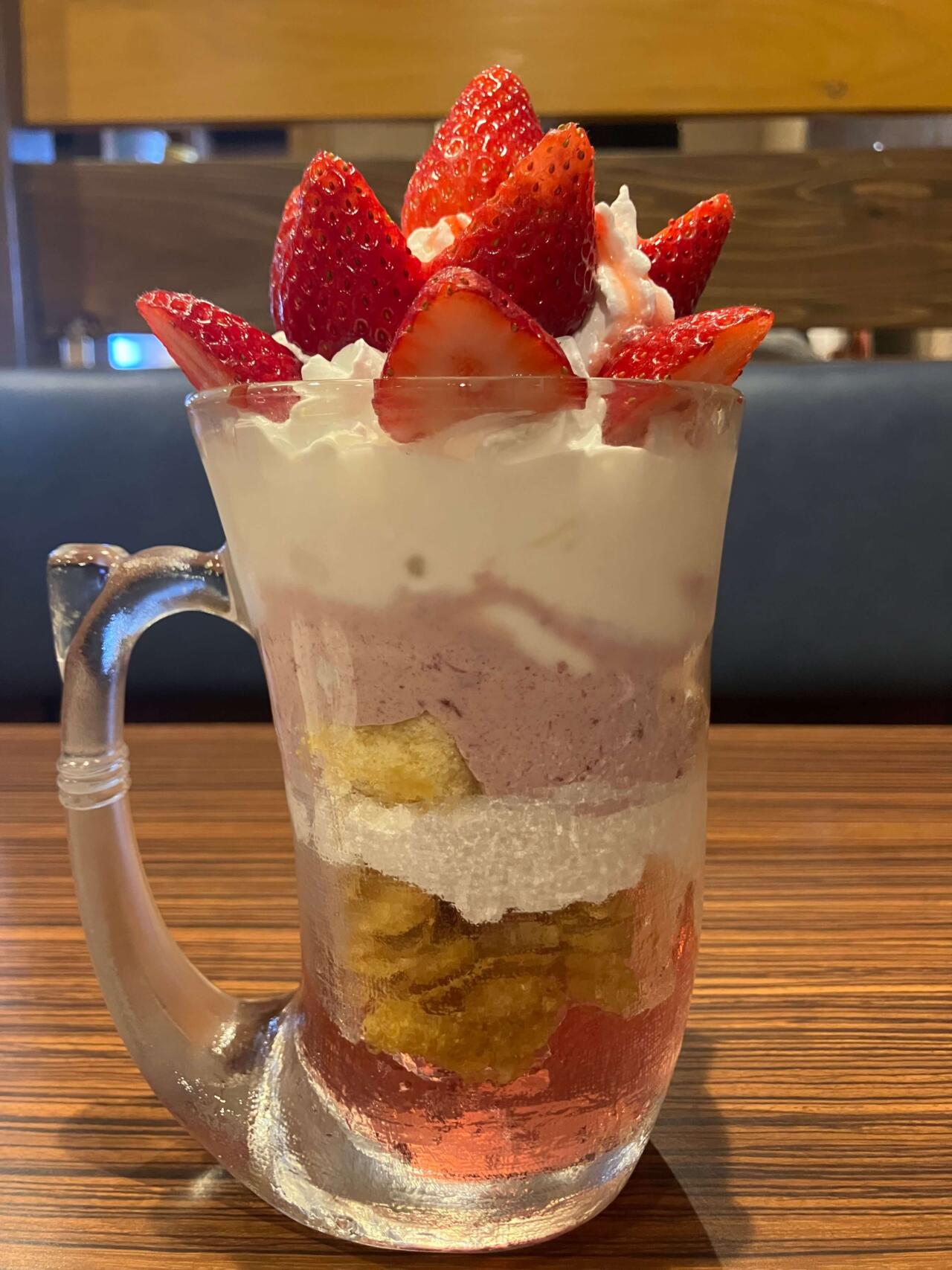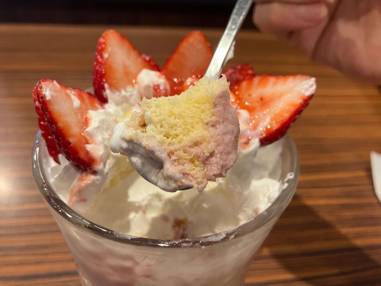 今回の白眉、マスカルポーネいちご!【びっくりドンキーのジョッキパフェ】