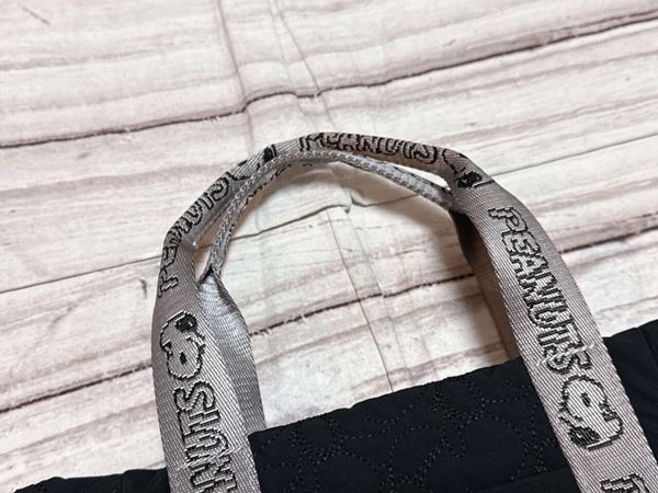 バッグの至るところにスヌーピーのデザインが散りばめられていますが、ブラックの同系色の刺繍とキルティングステッチなので、あくまでさりげない印象。