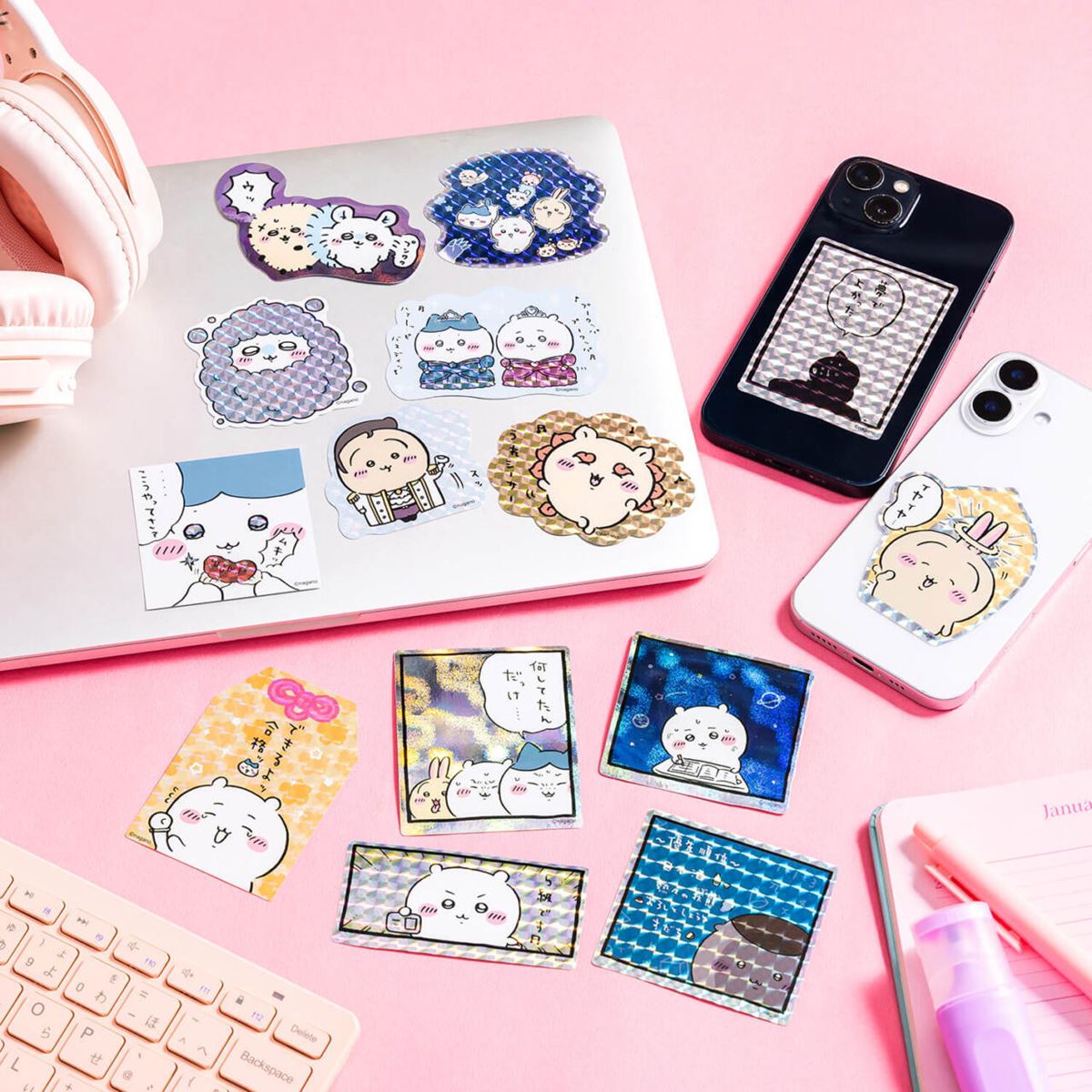 スマホに貼れるサイズのステッカー 各330円 ©nagano
