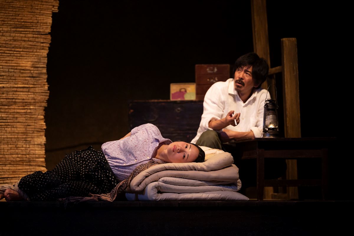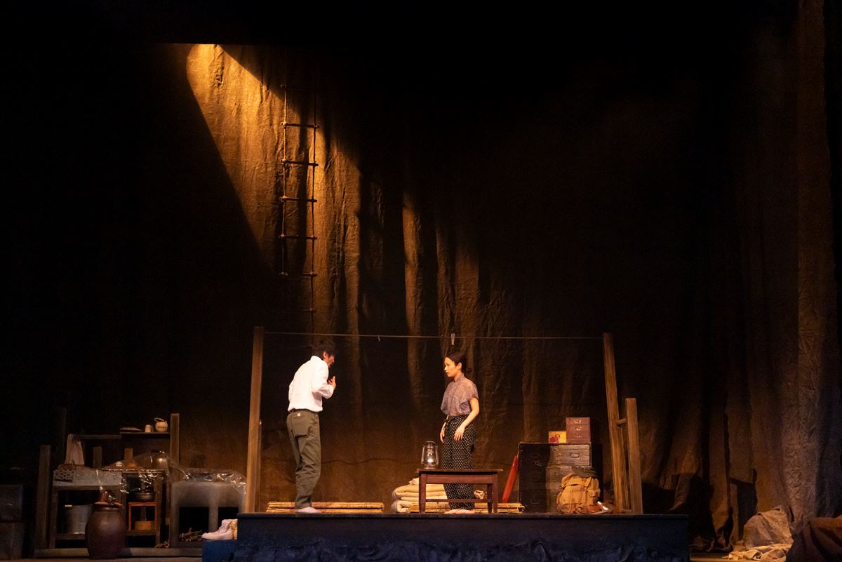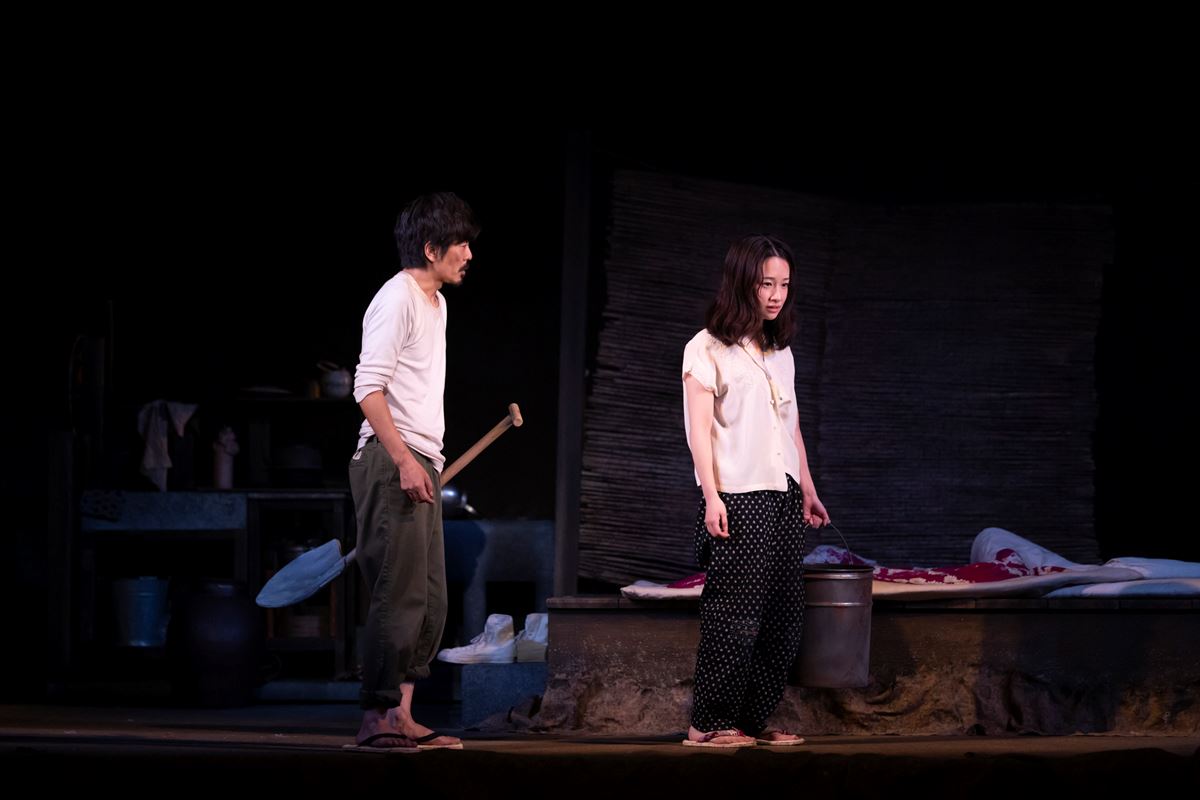 そしてやはり、最も強い印象を残すのは女だろう。というのも映画版で女を演じた、岸田今日子がとにかくすごかったのだ。妖しく、なまめかしく、怖い。映画『砂の女』について語る際、ファンの多くがまずは岸田の名前を挙げるのも納得である。それだけに今回女を演じた、藤間爽子のプレッシャーは相当なものだったはず。だが藤間が見せる女は、いい意味でこちらの期待を裏切ってきた。いたずらっぽい、かわいらしい一面もあるが、どこか達観しても見える。彼女から滲み出るこの生活に対する諦めが、そんなふうに思わせるのかもしれない。