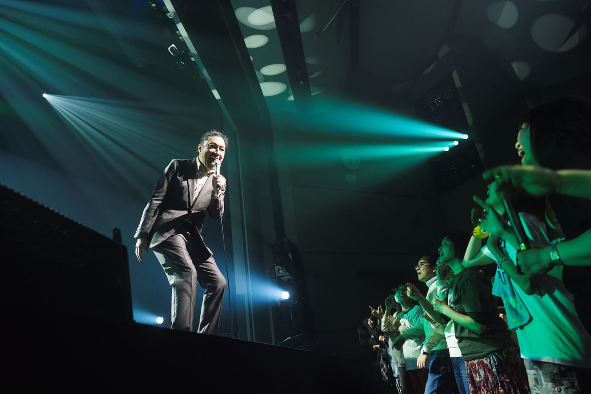 そんなMC明けの「愛がなくちゃ」は、博愛に満ちたピースフルナンバー。サンコンが歌う「コミコミ」、ジョンBが歌う「センチメンタルフィーバー ~あなたが好きだから~」とウルフルズ3人ならではの個性も際立っていて聴いているだけでワクワクする。とここまでは、ただただ楽しく聴いていたのだが、素敵な事件が次の瞬間に起きた。