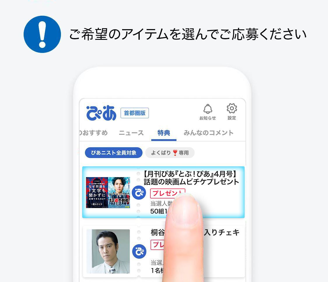 ※応募フォームにて、『とぶ!ぴあ』4月号に掲載されている「キーワード」をご入力ください。