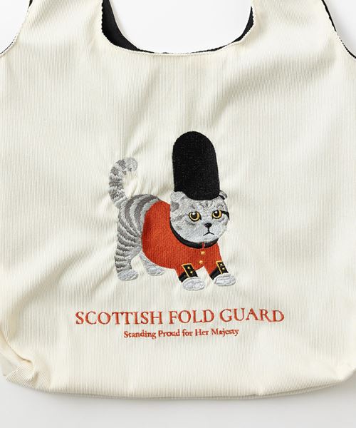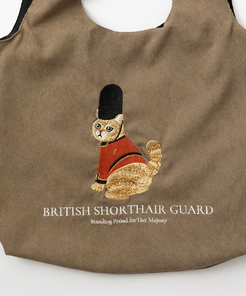 今回登場したのは、英国王室や近衛兵をテーマに、わんこやにゃんこが気品たっぷりにポーズを決めた刺繍バッグ。キャバリアやブリティッシュショートヘア、スコティッシュフォールドなど、英国にゆかりのある犬種・猫種がモチーフになっています。