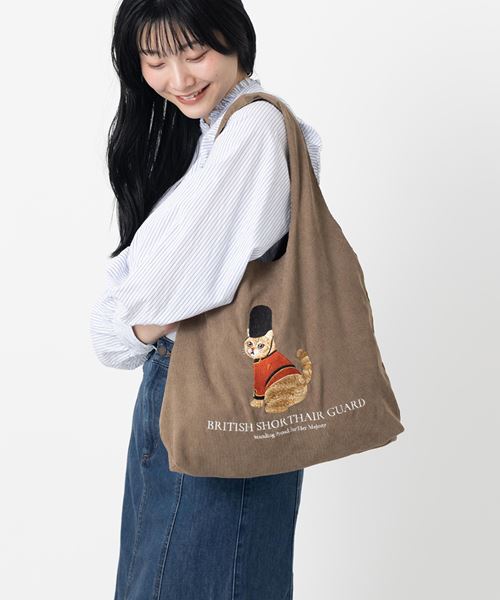 ■Jubilee「英国 猫犬デザイン刺繍 コーデュロイトートバッグ」