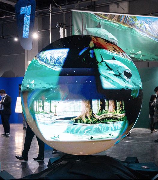 会場の中央で来場者を迎えるのは、暗闇に浮かび上がる球形スクリーン『大絶滅スフィア』だ。青く輝く地球の表面に、過去5回にわたって生命を飲み込んだ『ビッグファイブ』の衝撃が次々と映し出される。かつてこの星で起きた喪失と再生の歴史をダイナミックな映像で辿るこの演出は、これから始まる40億年の壮大な旅へのプロローグとして、見る者を一気に引き込んでいく。